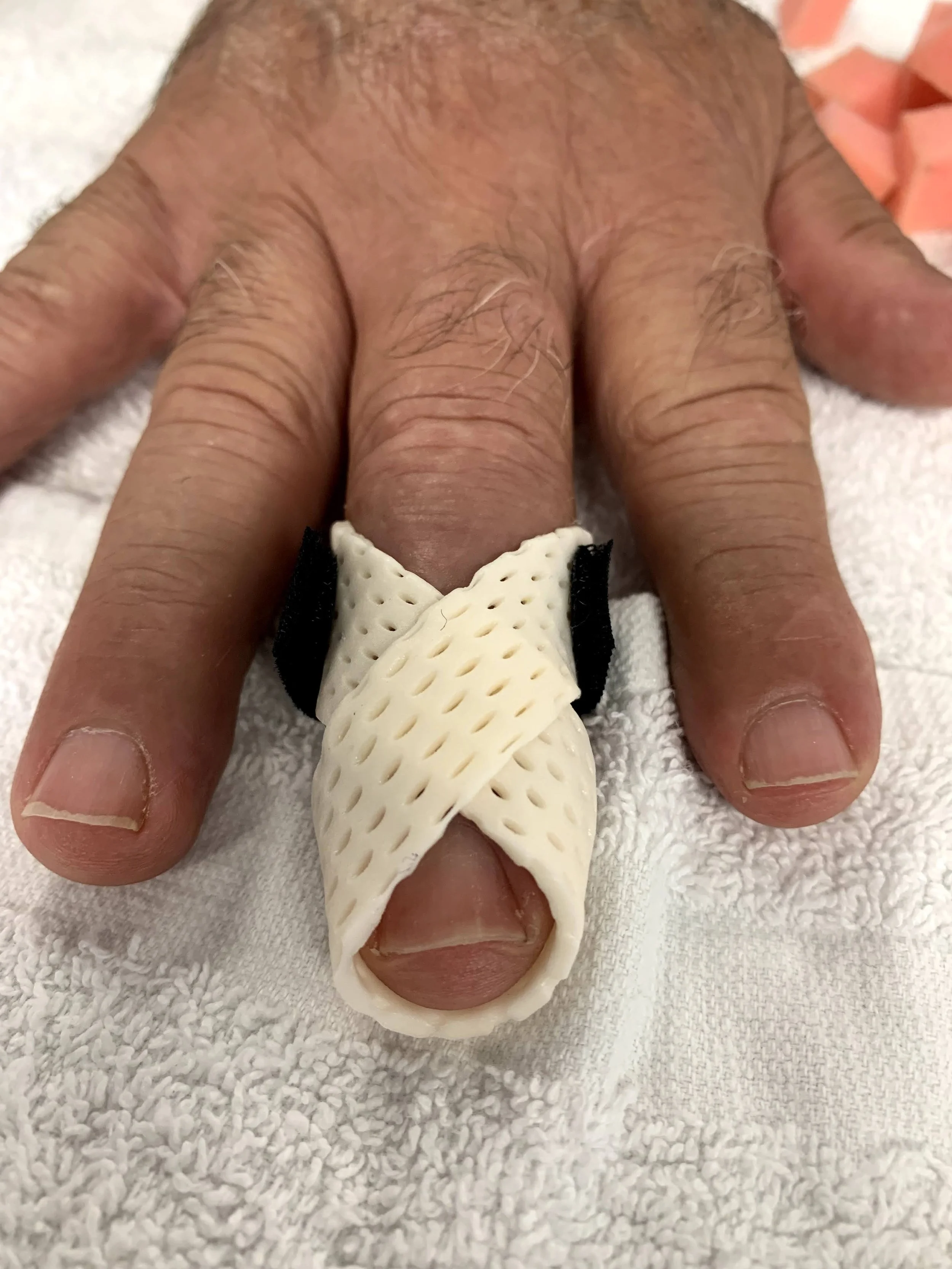 Custom splints are hand-fabricated orthoses, or braces, made to fit the unique shape and need of your hand, wrist, elbow, or finger. Unlike over-the-counter braces, these splints are molded directly to you using thermoplastic materials—providing the right amount of support, mobility, and protection.